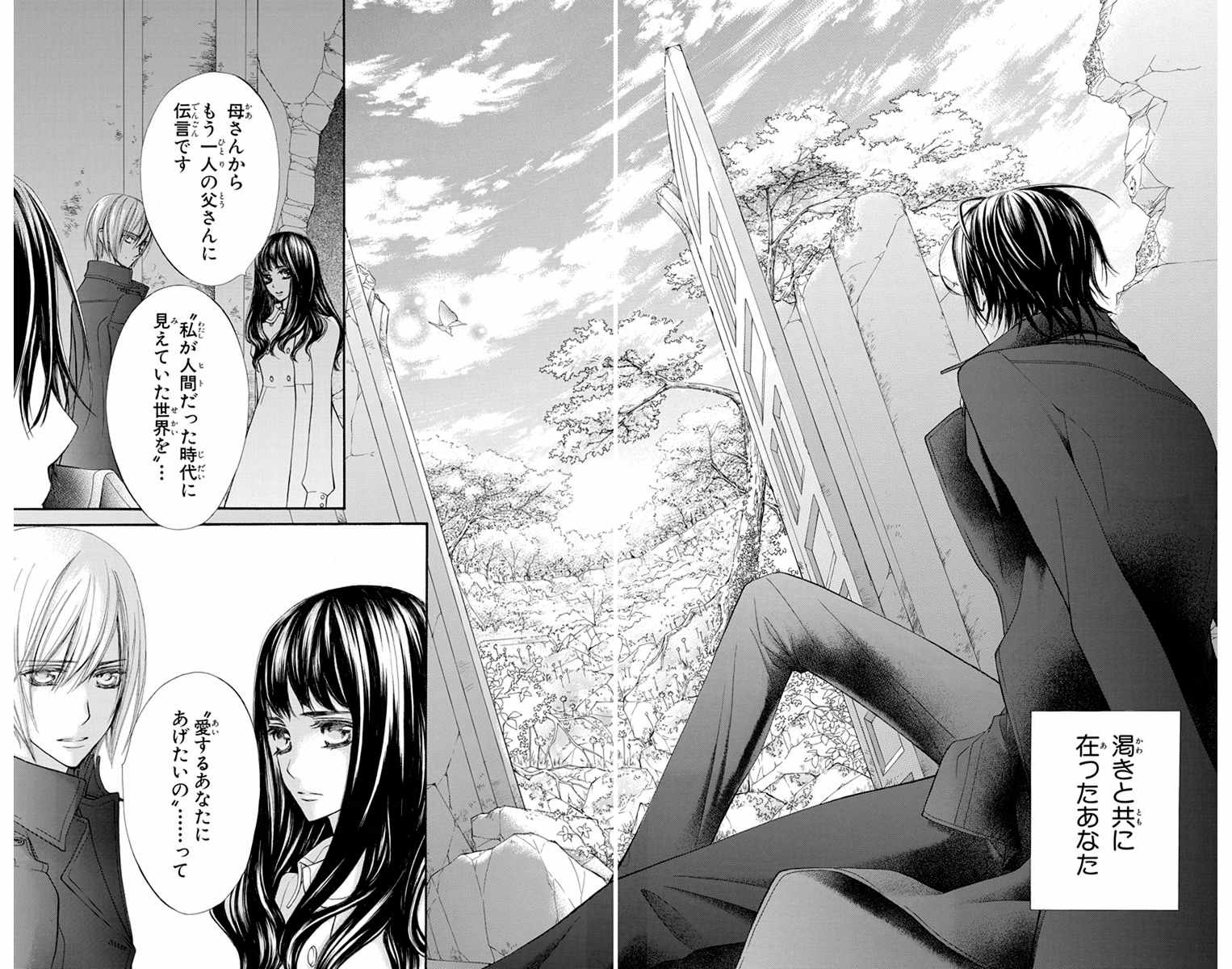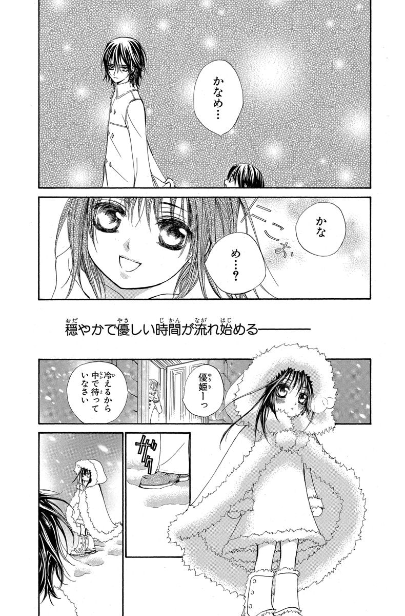 優姫が自らの心臓を与え、枢を人間として甦らせる。すべての記憶を失った枢に、愛と恋は千年の間に起きた出来事を語り始める。 |