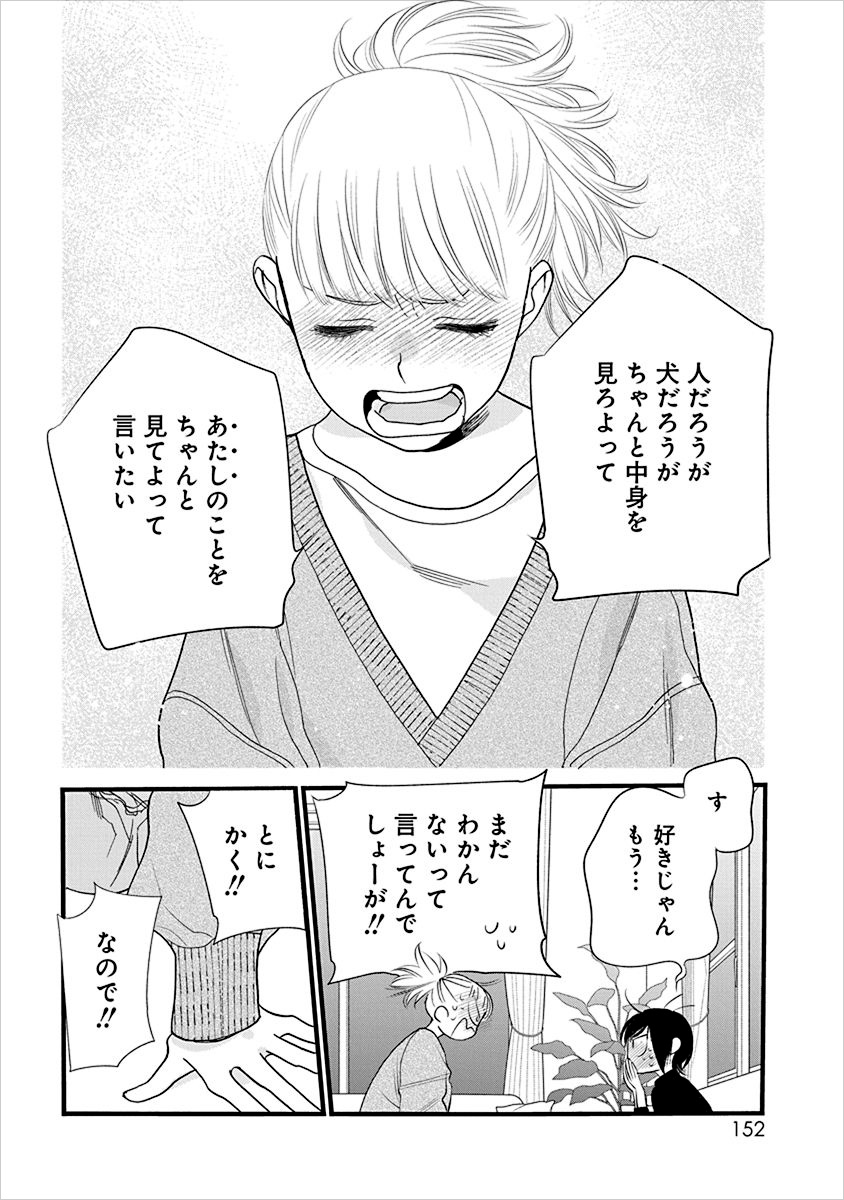 山田 そうなんです。犬になるのは女の子のほうで、主人公カップルは高校生同士という、その設定で70枚くらいネームを描きました。ただ「恋犬」は大人向け少女マンガ誌に載るものということで、編集長から「主人公たちを成人の設定にしてほしい」というリクエストがあって。志保と犬飼くんのお話もいずれ描きたいと思っていたので、「恋犬」が軌道に乗ったらまずは番外編か何かを描かせてもらって、さらに軌道に乗ったら本連載が終わった後に続編でやらせてもらえないかなと思って、ちょっと狙ってがんばっていたところはありました。