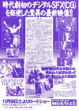 修羅之介斬魔剣 妖魔伝説 シュラノスケザンマケンヨウマデンセツ 1996年11月9日(土)公開 / 上映時間:92分 / 製作:1996年(日本) / 配給:東北新社=キングレコード 概要 配信情報 画像 監督の関連作品 出演者の関連作品 解説 京本政樹が美ぼうの剣士に扮するスーパー時代劇。江戸初期、最強の剣士・修羅之介が大藩の姫・真夕を救出。ところが、それ以来、彼は失われた秘宝をめぐる戦いに巻き込まれる。豊臣家に滅ぼされた北条家に関係し、その秘宝を狙うくノ一や独眼竜・伊達政宗、邪剣士群を操る怪僧らが入り乱れる中、修羅之介の剣技が舞う。「ウルトラマンゼアス」や「モスラ」を手掛けたオムニバス・ジャパンのSFXを駆使した殺りくシーンが見もの。 情報提供:ぴあ スタッフ 監督:津島勝 キャスト 京本政樹 今村理恵 中村敦夫 隆大介 高野拳磁 嶋村かおり 三浦理恵子 大和武士 戸川京子 上映スケジュール 近くの映画館 上映スケジュールがありません さらに読み込む より詳しい検索はこちら
