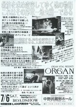 ORGAN(オルガン) オルガン 1996年7月6日(土)公開[R-18] / 上映時間:102分 / 製作:1996年(日本) / 配給:オルガンヴィトー 概要 画像 監督の関連作品 出演者の関連作品 解説 劇団・赤テントの看板女優であり、「鉄男/TETSUO」で衝撃的なヒロインを演じた藤原京が不二稿京と名を改めて初監督した作品。闇の臓器売買屋を追う沼田刑事はある夜アジトに潜入し、瀕死の青年が生きながらに臓器を取り出される残虐な光景を目にする。逮捕の混乱のなかで部屋に火がつき、沼田は一味を取り逃がすばかりか相棒の刑事も見殺しにしてしまう。数日後、生徒の失踪事件が起きた都内の某女子高校。その生物教師は、あの臓器売買屋で青年の腹を裂いていた男だった。 情報提供:ぴあ スタッフ 監督:不二稿京 音楽:奈佐建臣 キャスト 不二稿京 長谷川公彦 奈佐建臣 広田玲央奈 菅田俊 大久保了 沢田遊吾 前川芳昭 上映スケジュール 近くの映画館 上映スケジュールがありません さらに読み込む より詳しい検索はこちら