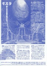 解説 ゴジラと人気を二分する正義の怪獣・モスラの1990年代版シリーズ第1作のSFファンタジー。北海道の森林開発現場の崖の中から、不気味な岩が現れる。商社マンが、娘のプレゼントにと岩の中央に光るメタルを剥がし取って持ち帰る。同じ頃、インファント島で危険を感じた妖精のモルとロラの姉妹は東京の後藤家に向かうが、すでにメタルを奪うために黒い妖精が現れていた。メタルを巡り戦いを繰り広げるが、ベルベラが勝利し北海道の巨大な岩に封じ込められていた魔獣デスギドラを解き放してしまう。姉妹はモスラを呼び寄せるために歌い始める……。地球環境問題や、家族の絆をテーマに映画化。