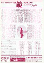 鏡(1975年) カガミ 上映時間:109分 / 製作:1975年(ソ連) 概要 画像 ニュース 監督の関連作品 オススメ作品 解説 A・タルコフスキーが、自伝的な心象風景を独自の水と火をモチーフにして映像の中に展開した美しい映像詩。木々に囲まれた木造りの家にたたずむ母の思い出、母に似た妻ナタリアへの愛と別離、そして戦争の悲劇……。まるで万華鏡のように現れては消えるイメージの渦だ。A・タルコフスキーの実父で詩人の、アルセニー・タルコフスキーの詩が監督自身の朗読により効果的に挿入されている。 情報提供:ぴあ スタッフ 監督:アンドレイ・タルコフスキー キャスト マルガリータ・テレホワ オレグ・ヤンコフスキー イグナート・ダニルツェフ フィリップ・ヤンコフスキー 上映スケジュール 近くの映画館 上映スケジュールがありません さらに読み込む より詳しい検索はこちら