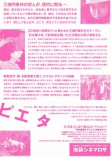 ピエタ ピエタ 1997年5月24日(土)公開 / 上映時間:94分 / 製作:1997年(日本) / 配給:日活=NERVOUS 概要 画像 監督の関連作品 出演者の関連作品 あらすじ・ストーリー 海外から帰った3億円事件の犯人は、見た目は当時の年齢のままだが、名前を失っていた。撮影所で働く冴子と出会った彼は、昔の仲間いく子や寅夫と、再び現金輸送車を狙う。 解説 新人、北川篤也が描く、奇想天外な犯罪物語。'68年に起きた3億円事件の犯人が、現代に登場。大胆不敵にも事件の再現をもくろむ姿を、ノスタルジックなタッチで描写していく。 情報提供:ぴあ スタッフ 監督:北川篤也 キャスト 大沢樹生 松原智恵子 諸江みなこ 志賀勝 伊佐山ひろ子 石丸謙二郎 阿部サダヲ 手塚とおる 田口トモロヲ 佐藤允 上映スケジュール 近くの映画館 上映スケジュールがありません さらに読み込む より詳しい検索はこちら
