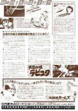 解説 ジョナサン・スウィフトの『ガリバー旅行記』に書かれた、空に浮かぶ島に想を得て、宮崎駿が初めて映画のみのオリジナルで製作した冒険アクション。20世紀初頭の西欧のムードを持った世界を舞台に、伝説の浮島・ラピュタをめぐる、正邪の攻防戦が描かれている。またラピュタをはじめとして、羽ばたき式飛行機のフラップターや、ラピュタを守るロボット兵など、宮崎駿独特の奇想天外なメカも続々登場。生真面目な部分を残してはいるものの、目指した“痛快娯楽冒険活劇”をよく体現して、広い支持を得た。ラピュタの発見を信じてもらえぬまま死んだ父を持つ、見習い機械工の少年パズーは、飛行石のペンダントを狙う空中海賊のドーラ一味から、少女シータを助けた。飛行石こそラピュタを空に浮かせる力の源だったが、二人はラピュタを探す国防軍に捕まり、実はラピュタの王位継承者だったシータを残して、パズーは釈放される。パズーは、ドーラたちの助けを借りてシータを救出し、再びラピュタ探しを始めるが……。