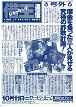 借王(シャッキング) シャッキング 1997年10月11日(土)公開 / 上映時間:86分 / 製作:1997年(日本) / 配給:日活 概要 配信情報 画像 ニュース シリーズ関連作品 監督の関連作品 出演者の関連作品 オススメ作品 あらすじ・ストーリー 15億円を使い込んだ銀行員とサラ金地獄にはまる刑事、経営に行き詰まったクラブのママ。生活環境が異なるも共通の問題を抱える彼らが、手を組んで奇想天外な計画に着手する。 解説 『リイドコミック』に連載中の同名人気コミックを映画化した痛快エンターテインメント。莫大な借金を背負った3人組が企てる一大詐欺計画の行方を、小気味よいタッチで描く。 情報提供:ぴあ スタッフ 監督:和泉聖治 原作:土山しげる キャスト 哀川翔 志賀勝 夏樹陽子 室田日出男 三谷昇 絵沢萠子 浜田光夫 安部譲二 堀田真三 高月忠 全て表示 左右田一平 渡辺哲 上映スケジュール 近くの映画館 上映スケジュールがありません さらに読み込む より詳しい検索はこちら