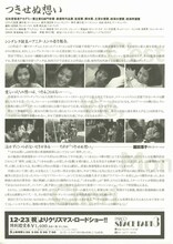 つきせぬ想い ツキセヌオモイ新不了情 製作:1993年(香港) 概要 画像 ニュース 監督の関連作品 出演者の関連作品 オススメ作品 解説 不治の病に冒され、余命いくばくもない少女と売れない青年作曲家のラブ・ストーリー。作曲家のキットは妥協することができず鬱屈とした日々を送っていた。人気歌手のトレーシーと同棲をしていたが、ある日、口論をし、キットは部屋を出てしまう。新しく借りたアパートで、少女ミンと出会い、やがて愛し合うようになる。明るく積極的なミンだったが、いつ再発するかわからないガンを持病に持っていた。ミン役のA・ユンがみずみずしい演技を見せている。 情報提供:ぴあ スタッフ 監督:イー・トンシン キャスト アニタ・ユン カリーナ・ラウ シルヴィア・チャン 上映スケジュール 近くの映画館 上映スケジュールがありません さらに読み込む より詳しい検索はこちら