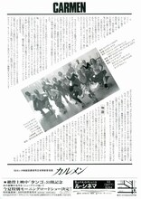 あらすじ・ストーリー 「カルメン」のミュージカル化を望む劇団主宰者アントニオが、ヒロインと同じ名前の美女を発掘する。しかしアントニオは彼女に心を奪われ、劇中の物語そのものの悲劇が起こる。