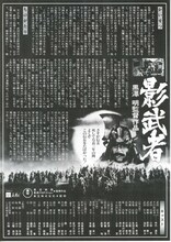 解説 黒澤明が久しぶりに挑んだ時代劇として話題を集め、カンヌ国際映画祭でグランプリを受賞した。外国版プロデューサーとしてフランシス・F・コッポラとジョージ・ルーカスが参加し、アメリカでも公開されて独創的な様式美と壮麗な合戦絵巻が評判を呼んだ。日本での黒澤映画は「どですかでん」以来10年ぶり。ロケは北海道から姫路城、熊本城と日本を縦断し、富士山麓には壮大な武田屋形のオープンセットも建てられた。あやうく処刑をまぬがれた盗人が武田信玄の影武者となり、信玄の幻に威圧されながらも敵をあざむいていくという設定は面白いが、往年の黒澤映画を貫くヒューマニズムが影をひそめたことは否めない。