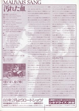 解説 20世紀末のパリ。セーヌ川の流れに変化はないが、愛のないセックスによって伝染する“STBO”という新しい病気が蔓延し、ハレー彗星が地球に近づいているため夜が暑い。ある日、ジャンという男が地下鉄で死ぬ。ジャンの友人マルクは、彼がアメリカ女に殺されたとにらむ。二人は彼女から汚ない金を借りていたのだ。マルクは借金を返済するため、ある薬品会社が開発した“STBO”の特効薬を盗もうと計画し、ジャンの息子アレックスに目をつける。アレックスはガール・フレンドのリーズに惚れていたが、新しい生活を始めるため、すべてを捨てて、マルクの計画に手を貸すことにするが……。フィルム・ノワールとメロドラマとSF、その三者を凝った画面構成で一体化させた新感覚のドラマ。完璧ともいえる色彩設計が施された画面の中で、きわめてエモーショナルなシーンの数々が炸裂していく。カラックスは本作で熱狂的な支持を得、大作「ポンヌフの恋人」に臨むことになる。