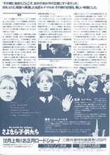 解説 1977年以来、創作活動の場をアメリカに移していたマルが、10年ぶりにフランスに戻って撮った自伝色の濃い作品。1944年、ナチス占領下のフランス。パリからカトリックの寄宿学校に疎開している12歳の少年ジュリアンは、転校生のジャン・ボネと親しくなるが、ある時、実はボネがユダヤ人であり、学校でかくまわれていることを知る。ジュリアンとボネの友情は、学校の料理番の密告でゲシュタポがやって来た時に終わりを告げる。ボネはゲシュタポに連行され、二度と戻ってこなかった。二人の少年の間に芽ばえた友情と別離を淡々と描いた感動作。
