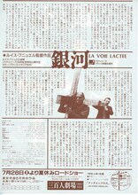 銀河(1968年) ギンガLA VOIE LACTEE 製作:1968年(仏=伊) 概要 画像 監督の関連作品 出演者の関連作品 解説 時は現代。パリからスペインの聖地へと旅するピエールとジャン。この道は“銀河”と呼ばれ、神秘に満ちた巡礼の道でもある。二人の行く手には、キリスト、聖母マリア、死の天使、サド侯爵らが次々と登場する……。奇想天外な出来事にあふれた、鬼才L・ブニュエルらしい自由奔放な傑作。 情報提供:ぴあ スタッフ 監督:ルイス・ブニュエル 音楽:ルイス・ブニュエル キャスト ポール・フランクール ローラン・テルジェフ アラン・キュニー デルフィーヌ・セイリグ 上映スケジュール 近くの映画館 上映スケジュールがありません さらに読み込む より詳しい検索はこちら