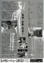 帝都大戦 テイトタイセン 上映時間:107分 / 製作:1989年(日本) / 配給:エクゼ 概要 配信情報 画像 ニュース シリーズ関連作品 監督の関連作品 出演者の関連作品 オススメ作品 関連商品 解説 荒俣宏原作の『帝都物語』第11巻“戦争(ウォーズ)篇“を映画用に大胆にアレンジ。ハリウッドから“超現実視覚効果“としてスクリーミング・マッド・ジョージが招かれ、SFXの現場を指揮している。戦争末期の帝都・東京の崩壊をたくらむ加藤保憲と二人の霊力者とのサイキック・ウォーズが展開されていく。 情報提供:ぴあ スタッフ 監督:一瀬隆重 原作:荒俣宏 キャスト 中村雄昂:加藤昌也 辰宮雪子:南果歩 加藤保憲:嶋田久作 水木玲子:野沢直子 森:斉藤洋介 観阿彌光凰:丹波哲郎 近衛文麿:日下武史 小笠原真教:高橋長英 純子:桂木文 上映スケジュール 近くの映画館 上映スケジュールがありません さらに読み込む より詳しい検索はこちら