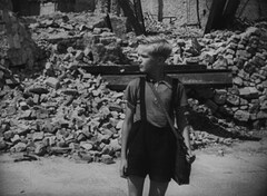 解説 「無防備都市」「戦火のかなた」に続いてR・ロッセリーニが、ベルリン・ロケで撮影したネオ・レアリスモを代表する1作。第二次大戦直後、焼けあとのベルリンの廃墟に生きのびた一家がいた。父は病に伏し、娘は外人相手に体を売って家計を助ける。ナチ党員の生き残りの長男は毎日ゴロゴロしている。末っ子のエドムント少年はヤミ屋の手先として働いていたが、ある日昔の小学校の教師に出会い、弱い者は死ぬべしという思想を吹き込まれ、病床の父に毒を盛る……。オールロケ、俳優は全員素人で作られ、作りものの感情を排してあくまで冷徹な目で荒廃した人間性を見つめ、後の世代に大きな影響を与えた作品。