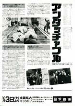 解説 1934年、腐敗した暗黒街シカゴ。禁酒法下にもかかわらず酒造販売で不当な利益を得ているギャングのボス、アル・カポネの調査に乗り出した、新任財務官のエリオット・ネス。一度は失敗し、警察内の笑い者になった彼だったが、ギャングの抗争に子供が犠牲になったことから、あらためて正義のために戦う決意をする。町で知り合った警官マローン、警察学校の新人ストーン、財務官のウォレスの3人を加え、買収に応じないグループを作るネス。カナダ国境での酒の取引現場を押さえ、帳簿を証拠として手中に。しかし、カポネ側の復讐が始まった。ウォレスが殺され、次にマローン。息絶え絶えのなかで、マローンはネスに情報を与えた。そして彼は運命のセントラル駅に向かう……。男と男の友情を、ギャング世界の中に描き上げた力作。K・コスナーの魅力もさることながら、S・コネリーの渋い演技が印象的だ。B・デ・パルマが珍しく勧善懲悪ものに才気を発揮したことも特筆すべきだろう。衣装はジョルジオ・アルマーニ。