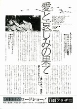 解説 1913年、デンマークの財産家の娘カレンはスウェーデンの男爵と結婚。アフリカの大地に魅せられてケニアに渡って来た。そこでコーヒー農園を経営することになったカレンは、限りない夢と希望に燃えていた。だが、高地でのコーヒー栽培はうまくいかず、夫の乱行にも悩まされる。そんな彼女を支えてくれたのは、冒険家デニスの優しい抱擁だった……。第58回アカデミー賞で、スピルバーグの「カラーパープル」と各賞を争い、結果的に計7部門を獲得した名作。ポラックの手堅い演出、レッドフォード、ストリープという当時、男女No.1のスターの競演は興行面での成功も収めた。