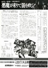 悪魔が来りて笛を吹く(1979年) アクマガキタリテフエヲフク 上映時間:136分 / 製作:1979年(日本) / 配給:東映東京 概要 画像 ニュース シリーズ関連作品 監督の関連作品 出演者の関連作品 オススメ作品 解説 不気味なフルートの音とともに起きる殺人事件を、西田敏行扮する名探偵・金田一耕助が鮮やかに解決する。監督は『太陽にほえろ!』『俺たちの旅』などTVシリーズで傑作を撮っている斎藤光正。光と影をうまく対比させた映像作りが面白い。 情報提供:ぴあ スタッフ 監督:斎藤光正 キャスト 金田一耕助:西田敏行 等々力大志:夏八木勲 椿美禰子:斉藤とも子 椿英輔:仲谷昇 椿秋子:鰐淵晴子 玉虫公丸:小沢栄太郎 菊江:池波志乃 三島東太郎:宮内淳 風間俊六:梅宮辰夫 風間敏江:浜木綿子 全て表示 妙子:北林早苗 上映スケジュール 近くの映画館 上映スケジュールがありません さらに読み込む より詳しい検索はこちら