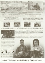 あらすじ・ストーリー フランスの保守的な村にやって来た、子連れの女性ヴィアンヌがチョコレート・ショップを開く。客の好みを見抜く彼女のチョコは大好評。ところが村のリーダー、レノ伯爵が、村人に店への出入りを禁止してしまい……。
