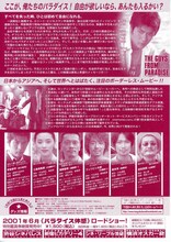 天国から来た男たち テンゴクカラキタオトコタチ 2001年6月16日(土)公開 / 上映時間:114分 / 製作:2001年(日本) / 配給:日活=ハマーズ=「天国から来た男たち」製作委員会 概要 配信情報 画像 監督の関連作品 出演者の関連作品 あらすじ・ストーリー フィリピンの税関で、身に覚えのない麻薬不法所持で逮捕された早坂。彼は賄賂を渡せば天国暮らしができるフィリピン刑務所の実態を知り唖然とする。やがて個性的な囚人仲間と心を通わせる。 解説 「ビジターQ」以前に完成していた三池崇史監督作品。フィリピンで無実の罪で投獄された商社マンが、刑務所でのびのびと生きる囚人仲間たちと脱出を企てる。遠藤憲一の怪演は一見の価値あり。 情報提供:ぴあ スタッフ 監督:三池崇史 音楽:吉川晃司 キャスト 吉川晃司 大塚寧々 山崎努 水橋研二 翁華栄 遠藤憲一 及川麻衣 金山一彦 上映スケジュール 近くの映画館 上映スケジュールがありません さらに読み込む より詳しい検索はこちら