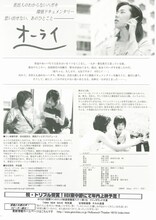 オーライ オーライ 2001年9月15日(土)公開 / 上映時間:75分 / 製作:2000年(日本) / 配給:カーニバル・フィルムズ=関西テレビ放送 概要 配信情報 画像 監督の関連作品 解説 OLであり、主婦でもある関西の映像作家、安田真奈によるさわやかな青春ストーリー。一人が一番楽だと思っているOLの結が、自分に宛てられた差出人不明のハガキを手に入れる。友人と差出人探しのドキュメンタリーを撮ることになった結が体験する奇妙な一日を、安田監督独特のナチュラルな演出と等身大の視点で映し出す。 情報提供:ぴあ スタッフ 監督:安田真奈 キャスト 三嶋幸恵 六車奈々 前田晃男 フランキー仲村 上映スケジュール 近くの映画館 上映スケジュールがありません さらに読み込む より詳しい検索はこちら