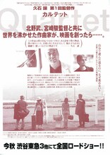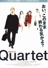 カルテット(2000年) カルテット 2001年10月6日(土)公開 / 上映時間:113分 / 製作:2000年(日本) / 配給:ソニー・ピクチャーズ=東急レクリエーション=カルテット パートナーズ 概要 画像 監督の関連作品 出演者の関連作品 あらすじ・ストーリー 卒業間近にカルテットを組んだ音大生の明夫、智子、大介、愛はコンクールに出場。だが結果は大失敗に終わる。それから3年後、4人はとある楽団のオーディション会場で偶然再会を果す。 解説 日本映画音楽の巨匠、久石譲が映画監督に初挑戦。人生の岐路に立つ男女4人が四重奏を通して、挫折から再起していく姿を爽やかに描く。もちろん、監督が担当した全編を彩る美しい音楽も必聴。 情報提供:ぴあ スタッフ 監督:久石譲 音楽:久石譲 キャスト 袴田吉彦 桜井幸子 大森南朋 久木田薫 藤村俊二 三浦友和 草村礼子 升毅 石丸謙二郎 上映スケジュール 近くの映画館 上映スケジュールがありません さらに読み込む より詳しい検索はこちら