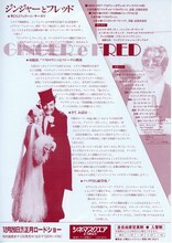 解説 “ジンジャーとフレッド”という名で、かつて人気を博した芸人コンビ、アメリアとピッポが、クリスマスのTV番組出演で、30年ぶりに再会する。共演者たちの奇妙きてれつな顔ぶれに戸惑う二人に出番の時がやってくる……。フェリーニがこれまでいろいろな形で表現してきた、TV産業に対する批判的姿勢を、より明確に、かつコミカルに映像化。ラスト、二人に再び訪れる別れのシーンでは、サラリとした演出ながら、互いの深い愛情が、きめ細かく情感たっぷりに盛り込まれている。また、フェリーニ映画を象徴する“巨大なもの”“サーカス的要素”も随所に散りばめられ、まさにフェリーニの集大成といえる作品である。