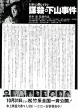 日本の熱い日々 謀殺・下山事件 ニホンノアツイヒビボウサツシモヤマジケン 上映時間:133分 / 製作:1981年(日本) / 配給:俳優座映画放送 概要 配信情報 画像 監督の関連作品 出演者の関連作品 解説 アメリカの占領下にあった昭和24年7月5日に起こった下山事件を、大胆な推理で“謀殺”とした当時の朝日新聞社の著作をもとに、社会派・熊井啓が描いた作品。国鉄労働者の大量リストラを前にして、下山国鉄総裁が轢死体で発見された。疑問を抱いた記者の追及が始まる……。熱いドキュメンタリー・タッチで目が離せない。 情報提供:ぴあ スタッフ 監督:熊井啓 キャスト 仲代達矢 山本圭 隆大介 井川比佐志 平幹二朗 浅茅陽子 中谷一郎 上映スケジュール 近くの映画館 上映スケジュールがありません さらに読み込む より詳しい検索はこちら