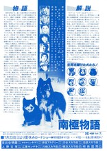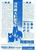 解説 1958年2月、やむなき事情により日本の南極探検隊の飼っていたカラフト犬15匹が、昭和基地に残された。この作品は、その時食糧のない厳寒の南極でひと冬を乗り切った2匹の犬、タロ、ジロの実話をもとにした動物映画。彼らが厳しい自然条件のなかをどう生き抜いたのか? そんな犬たちのサバイバル生活が、南極の雄大なる風景の中に描かれる。ある犬は氷の海に落ち、ある犬はシャチと闘って命を落としと、実話とドラマティックなフィクション部分をうまく融合させ、ある種感動的な美談として、蔵原監督が仕上げた。当時、それまでの邦画興行収入記録を塗り替える大ヒットとなった。