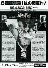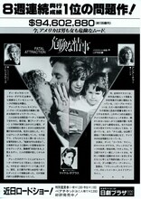 解説 1987年全米No.1ヒットのセクシー・サスペンス。弁護士ダンは、妻子の留守中に、仕事で知り合った魅力的な女性アレックスと一夜の情事を楽しんだ。彼にとってはほんの遊びのつもりだったが、アレックスは執拗な誘いを始め……。生々しいセックス・シーンをはじめ、G・クローズの妖しげで恐ろしいまでの演技など、A・ライン監督の演出が冴える問題作。