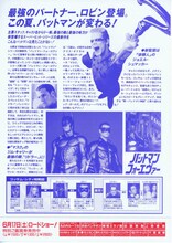 解説 監督、キャスト、コスチュームを一新し、新生バットマンの活躍を描くシリーズ第3作。ゴッサムシティの精神病院からバットマンに恨みを持つトゥー・フェイスが脱走した。同じ頃、自分の発明を相手にされなかった科学者ニグマもバットマンに復讐を誓う。そしてリドラーと名を変えゴッサムシティの悪の帝王と化したニグマは、トゥー・フェイスと手を組み、街全体を恐怖の渦に陥れる狂気の数々で復讐を開始するのだった……。M・キートンに替わってバットマンを演じるのはアクション、アドベンチャーに定評のV・キルマー。サイバーパンク型のバットマンスーツに身を包み二代目を好演している。悪役には個性派俳優のJ・キャリーとT・L・ジョーンズ、今回初めて登場したバットマンの相棒ロビンを二枚目俳優のC・オドネルが演じるなど豪華キャストも見逃せない。また、「スター・ウォーズ」のジョン・ダイクストラ、「ターミネーター2」のトーマス・L・フィッシャーによるSFX、リック・ベイカーによる特殊メイクも見もの。