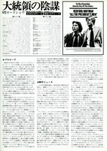 解説 ニクソン大統領を失脚させた“ウォーターゲート事件”は、『ワシントン・ポスト』紙のキャンペーンから始まった。真相究明のため、命を懸けた追跡調査を開始したのは二人の若い新聞記者B・ウッドワードとC・バーンスタイン。この映画は彼らが自分たちの取材活動をレポートした著書『大統領の陰謀』を映画化したもの。謎の人物“ディープスロート”の手掛かりを頼りに、地道に一歩一歩権力の腐敗に肉薄していくプロセス。そこに延びてくる権力の妨害の手……。レッドフォードはこの原作に強く惹かれ、映画化権獲得の交渉に自らが出向くほどの入れ込みようだった。結果は清潔で冷静な映画が出来上がり、アカデミー賞5部門を受賞して、社会派A・J・パクラの面目躍如といったところ。原題はマザーグースの一節 “All the king's men”をもじったもの。