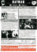 解説 50年前、アメリカン・コミックスのニューヒーローとして生まれ、世界中に一大ブームを巻き起こしたバットマン。大人から子供まで、全米のコミック&映画ファンを沸かせ大ヒットを飛ばした、第一級エンターテインメント映画だ。並外れた運動神経と鋭い知性の持ち主バットマンは、自家用最新秘密兵器を駆使して今夜も正義のために、摩天楼を飛びまわる。彼の前に立ちはだかるのは、無類の悪漢ジョーカー。今、二人の壮絶バトルロイヤルの火ブタが切って落とされた。我らがバットマンを演じるのは、特異キャラクターで定評のあるM・キートン。宿敵ジョーカーを名優J・ニコルソンが怪演。