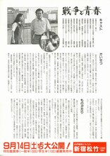 戦争と青春 センソウトセイシュン 上映時間:110分 / 製作:1991年(日本) / 配給:こぶしプロダクション=プロデュースセンター=映画「戦争と青春」制作委員会 概要 配信情報 画像 ニュース 監督の関連作品 出演者の関連作品 オススメ作品 関連商品 解説 ヒューマニズムに裏打ちされた数々の名作で知られる今井正が、昭和20年3月10日未明の東京大空襲を背景に、戦争によって運命をほんろうされた一人の女性の姿を描いた早乙女勝元原作を映画化。工藤夕貴が現代の女子高生と、戦争の傷跡を引きずる叔母の青春時代の二役を熱演している。 情報提供:ぴあ スタッフ 監督:今井正 原作:早乙女勝元 キャスト 工藤夕貴 佐野圭亮 井川比佐志 奈良岡朋子 樹木希林 河原崎長一郎 上映スケジュール 近くの映画館 上映スケジュールがありません さらに読み込む より詳しい検索はこちら