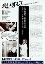 解説 夫とのセックスに満足できない人妻ケイトは分析医の治療を受けている。彼女は美術館で出会った行きずりの男との情事のあと、エレベーターの中で殺害された。事件を目撃した娼婦リズは、ケイトの息子ピーターとともに犯人捜査に乗り出すことにするが……。官能的なカメラワークが光る、B・デ・パルマお得意のサスペンス。A・ディキンソン、N・アレンという新旧スターのお色気も見もの。