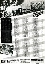 解説 ニューヨークにある芸能専門学校で学ぶ若者たちを描いた青春映画。音楽・演劇・ダンスの3コースがある芸能専門学校の新学期が始まり、夢を抱いた若者たちが入学して来る。歌手志望のココ、ダンサーを夢見るリサ、音楽の天才ブルーノ、友だちの試験について来ただけなのになぜか受かってしまったリロイらは、すぐに仲良くなる。教授から才能がないと言われたリサはダンス科から演劇科に変更する。勉強のできないリロイはいつも教授とぶつかってばかり。ココは映画プロデューサーを名乗る男にだまされる。やがて、4年が経ち、ココらも新しい世界に旅立つ時が来る。卒業式のパーティーでみんなは自慢の芸を披露するのだった。ラストのパーティー場面だけでなく、食堂や路上で繰り広げられる歌とダンスのシーンが圧倒的なパワーで、エネルギッシュさにあふれている。出演者中、主役クラス8人はオーディションで決定。特にココを演じたI・キャラの歌が抜群で、アカデミー主題歌賞を受賞した。