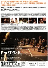 あらすじ・ストーリー 山麓の寒村ドッグヴィルの若者トムは、マフィアに追われる謎の美女グレースと出会い、村全体が協力して匿うことを提案する。村人全員に賛成してもらうために2週間の猶予を与えられたグレースは、村人のために働き始めるが……。