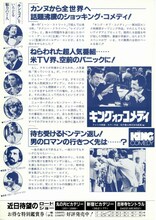解説 「タクシードライバー」「レイジング・ブル」などで知られる、デ・ニーロ=スコセッシのコンビによる異色作。スター・コメディアンに憧れるしがないメッセンジャー・ボーイが、一晩だけでもスターになろうと人気コメディアンを誘拐し、彼の命をタテにTVに出演するというドラマが展開。現代人特有のロマンと狂気をリアルに描き出している。
