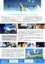 雲のむこう、約束の場所 クモノムコウヤクソクノバショ 2004年11月20日(土)公開 / 上映時間:91分 / 製作:2004年(日本) / 配給:コミックス・ウェーブ (C)Makoto ShinkaiCoMix Wave 概要 配信情報 画像 ニュース 監督の関連作品 出演者の関連作品 オススメ作品 関連商品 あらすじ・ストーリー かつて互いに想いを寄せたサユリが奇病で眠り続けていると知ったヒロキとタクヤ。彼女を何とか目覚めさせようと、ふたりは原因を探る。 解説 今後のさらなる活躍が期待される30代の新鋭、新海誠監督による長編アニメ。原因不明の覚醒障害で眠り続ける少女を救おうとする、少年ふたりの友情と青春を描く。主人公ふたりの声を『半落ち』の吉岡秀隆と、『この世の外へ/クラブ進駐軍』の萩原聖人が担当。実力派俳優両人の声優ぶりにも注目だ。 情報提供:ぴあ スタッフ 監督:新海誠 原作:新海誠 キャスト 藤沢浩紀:吉岡秀隆 白川拓也:萩原聖人 沢渡佐由理:南里侑香 岡部:石塚運昇 富澤常夫:井上和彦 笠原真希:水野理紗 上映スケジュール 近くの映画館 上映スケジュールがありません さらに読み込む より詳しい検索はこちら