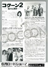 解説 前作で、不死の身体を手に入れるため地球を離れた老人たちが、置き残した“まゆ“を引き揚げようと戻ってきたアンタレス星人とともに里帰り。家族との久々の再会を楽しむ。だがその間に“まゆ“は学者の手に渡ってしまう。老人たちは大活躍し、ついに“まゆ“を奪回するが……。前作の主要キャストがそっくり残ったシリーズ第2作。