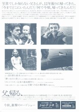 解説 ロシアの新鋭アンドレイ・ズビャギンツェフが、ヴェネチア映画祭グランプリを獲得したロードムービー。12年前に失踪した父親の突然の帰還に戸惑うふたりの兄弟。父親に連れられ無人島への旅に出た彼らの心の葛藤が綴られる。父帰宅の理由など様々な謎を明かさず、神秘的な情景描写が見る者を魅了する。