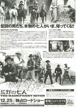 解説 黒澤明の『七人の侍』の物語を、19世紀末メキシコに翻案して映画化した西部劇。エルマー・バーンスタインの勇壮なテーマ曲に乗せ、無数の野盗集団と闘うガンマン7人の姿を描写。ユル・ブリンナー、スティーヴ・マックィーンらが活劇の醍醐味を伝えるこの名作をニュープリントで上映する。