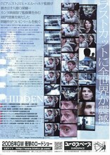 あらすじ・ストーリー TVキャスター、ジョルジュと妻アンの元に、彼らの家を撮影したビデオテープが届く。いったい何者の仕業なのか不安を募らせるジョルジュの脳裏には、少年時代の忌まわしい記憶が甦り…。