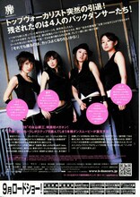 あらすじ・ストーリー 人気シンガー、ジュリが電撃的に引退を発表。残されたバックダンサーのミウ、よしか、ともえ、愛子は、新人マネージャーの茶野と共に活動を再開するが、なかなか仕事にありつけず……。
