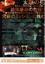 あらすじ・ストーリー 2057年、太陽が消滅し人類滅亡の危機に立たされた地球では、太陽再生のため男女8人のエキスパートが集結。だが、宇宙船“イカロス2号“に乗り込み宇宙へと旅だった彼らの行く手には、想像を絶する恐怖が待ち受けていた。