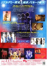 解説 '82年のトニー賞で6部門に輝いたブロードウェイの大ヒット・ミュージカルを、『シカゴ』の脚本家ビル・コンドンが初監督で映画化。60年代のシカゴを舞台に、コーラスグループを結成した仲よしの3人の女の子の栄光と挫折、再生を描く。主人公のクセ者マネージャーに『Ray/レイ』のオスカー俳優ジェイミー・フォックス。ビヨンセが10キロ減量してヒロインに挑んでいるのも話題だ。