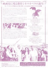 あらすじ・ストーリー 第一次世界大戦中、兵士タミーノは夜の女王に仕える侍女に命を救われた。夜の女王から娘のタミーナを救い出して欲しいと魔法の笛を授かった彼は、暗黒卿ザラストロの元に向かうが、タミーナと出会った瞬間、恋に落ちてしまう。