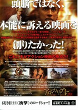 あらすじ・ストーリー ジャングルの穏やかな村に暮す青年ジャガーが、マヤ帝国の兵士に都市へと連行された。そこで行われていたのはおぞましい生贄の儀式。辛くも脱出した彼は、追手を退けながら家族の住む村へ決死の逃避行を開始する。