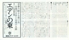 解説 24歳でこの世を去ったJ・ディーンの代表作にして、戦後アメリカ映画の名作の一つに挙げられる作品。原作はスタインベックだが、原典は旧約聖書のカインとアベルの物語にある。農場を経営するトラスクー家にはアロンとキャルという兄弟がいた。兄は生真面目で性格も温厚な父親のお気に入りだが、弟の方は気むずかしい性格の暴れん坊だ。キャルは父親にもケムたがられ、やることなすことすべて裏目に出てうまくいかない。そんなキャルに優しく接するのはアロンの婚約者エイブラだけだった。ローゼンマンのテーマ曲は映画音楽のベスト・ワンとして永く後世に残る名曲である。