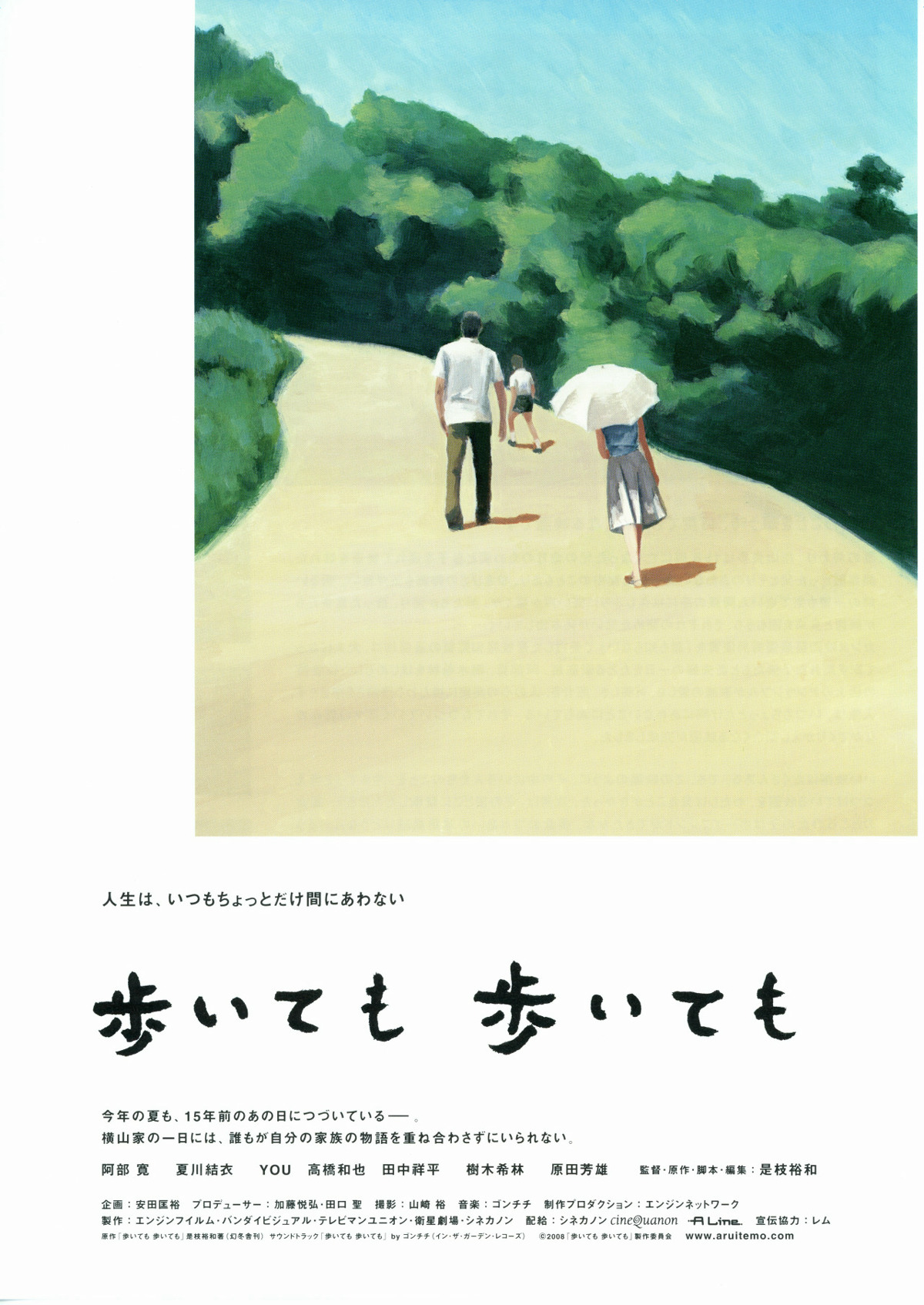 歩いても 歩いても アルイテモアルイテモ 2008年06月28日(土)公開 / 上映時間:114分 / 製作:2007年(日本) / 配給:シネカノン (C) 2008「歩いても 歩いても」製作委員会 概要 配信情報 画像 ニュース 監督の関連作品 出演者の関連作品 オススメ作品 関連商品 あらすじ・ストーリー かつて開業医を営んでいた横山家に子供たちとその家族が集まった。亡くなった長男と常に比較されて育った冴えない次男の良多は失業しているが、そのことを家族に打ち明けずにやり過ごしたいと思っており…… 解説 『誰も知らない』や『花よりもなほ』など、丁寧な作品作りで多くの観客の心を掴む是枝裕和監督最新作。ある夏の一日の家族を風景を切り取りることで、人生の喜びと哀しみが静かに浮かび上ってくるホームドラマを目指す。人間関係や心模様の移り変わりを細やかに表現するべく、樹木希林、原田芳雄ら日本映画界を代表する俳優陣が集結している。 情報提供:ぴあ スタッフ 監督:是枝裕和 原作:是枝裕和 キャスト 阿部寛 樹木希林 夏川結衣 原田芳雄 YOU 寺島進 高橋和也 田中祥平 野本ほたる 林凌雅 全て表示 加藤治子 リンク 映画「歩いても 歩いても」公式サイト 上映スケジュール 近くの映画館 上映スケジュールがありません さらに読み込む より詳しい検索はこちら