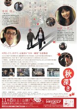 秋深き アキフカキ 2008年11月8日(土)公開 / 上映時間:105分 / 製作:2008年(日本) / 配給:ビターズ・エンド (C)2008「秋深き」製作委員会 概要 配信情報 画像 監督の関連作品 出演者の関連作品 あらすじ・ストーリー 仏具屋を営む両親と暮らす中学教師の寺田は真面目だが少々気が弱い男。しかし、先輩教師に連れて行かれたクラブで出会った一代に一目惚れしてしまった彼は、懸命に求愛。その努力が実を結び、ふたりは夫婦となる。 解説 『夫婦善哉』などの作品で知られる織田作之助の短編小説を基に、一途に愛を育む夫婦の姿を描いた感動ドラマ。真面目で気が弱いが、一目惚れした相手に愛を貫こうとする男を八嶋智人が、忘れられない過去を抱えながら男の愛に応えようとする女を佐藤江梨子が演じる。監督は『ハサミ男』や特撮シリーズなど幅広いジャンルを手がける池田敏春。 情報提供:ぴあ スタッフ 監督:池田敏春 音楽:本多俊之 キャスト 八嶋智人 佐藤江梨子 佐藤浩市 赤井英和 渋谷天外 山田スミ子 和泉妃夏 鍋島浩 別府あゆみ 要冷蔵 全て表示 芝本正 轟太郎 橋野香菜 海原はるか 海原かなた リンク 映画「秋深き」公式サイト 上映スケジュール 近くの映画館 上映スケジュールがありません さらに読み込む より詳しい検索はこちら
