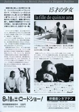 解説 15歳の少女ジュリエットは、ボーイフレンドのトマとその父親ウィリーとともに、夏のバカンスをスペインのイビザ島で過ごす。ウィリーは次第にジュリエットに愛を感じるようになっていた。それに気付いたトマは……。一人の少女をめぐる父と息子の三角関係を、ドワイヨンならではの微細なタッチで描き上げた作品。ビデオ発売時タイトルは「15歳、無秩序な妖精」。